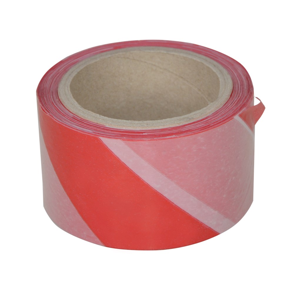 Warning tape 5cmx100mx0.03mm size, used in construction yards, the road works etc.. Material: PVC. Red & White Color
