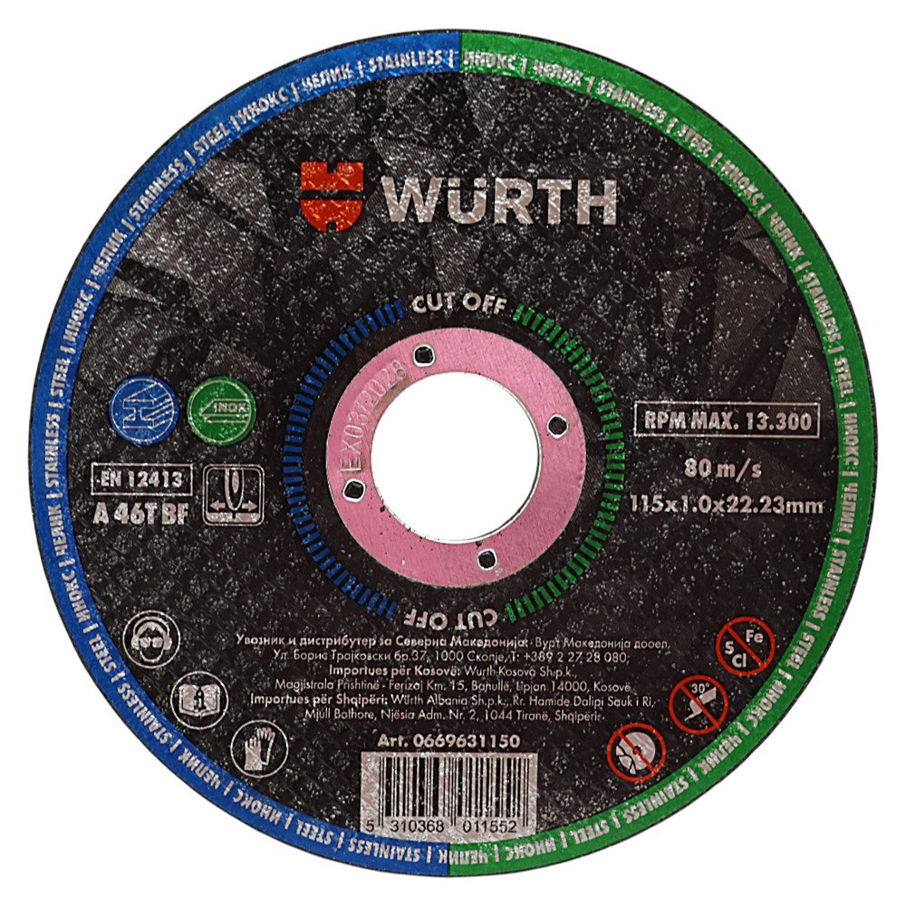 The Cut-OFF cutting discs from Würth, measuring 115x1.0 mm, are specially designed for precise and efficient cutting of stainless steel and other hard metal materials. With a thickness of only 1.0 mm, this disc ensures clean, thin and distortion-free cuts, reducing the heating of the material during the cutting process. This makes it ideal for professional use in the metalworking industry, various installations or precision work in the workshop. The guaranteed high quality ensures a long service life, maximum safety during use and stable performance even under intensive working conditions.