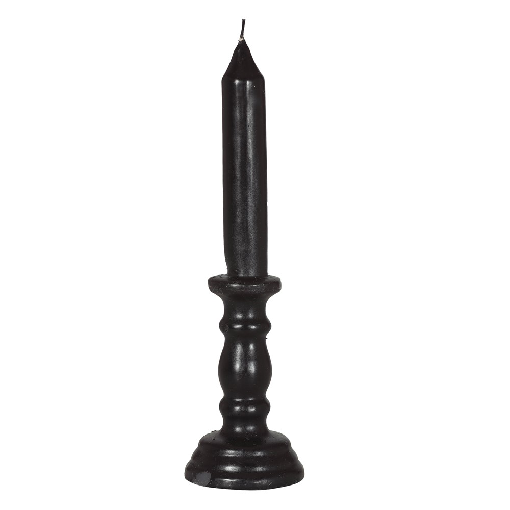 Decorative candle, equipped with holder, made of plastic material, in black color. It is used to decorate various environments, in case of holidays such as Halloween, carnivals or costume parties.