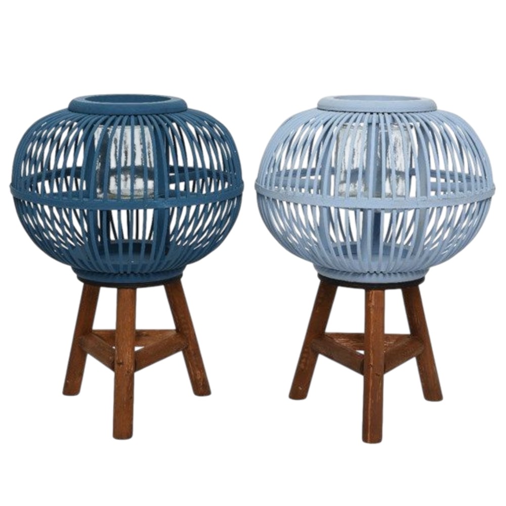 Decorative lantern, bamboo, Blue/brown, Ø31xH42 cm