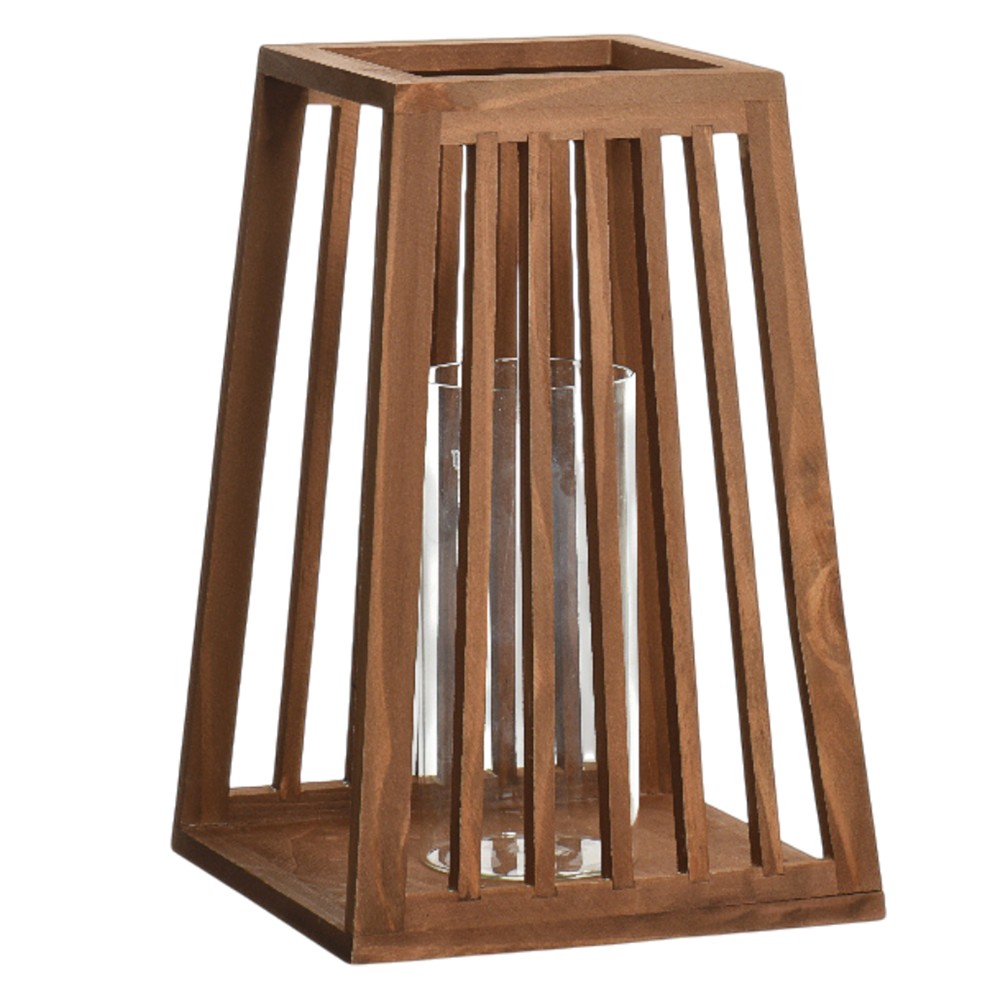 Decorative lantern, L, wooden, brown, 20x20xH30cm