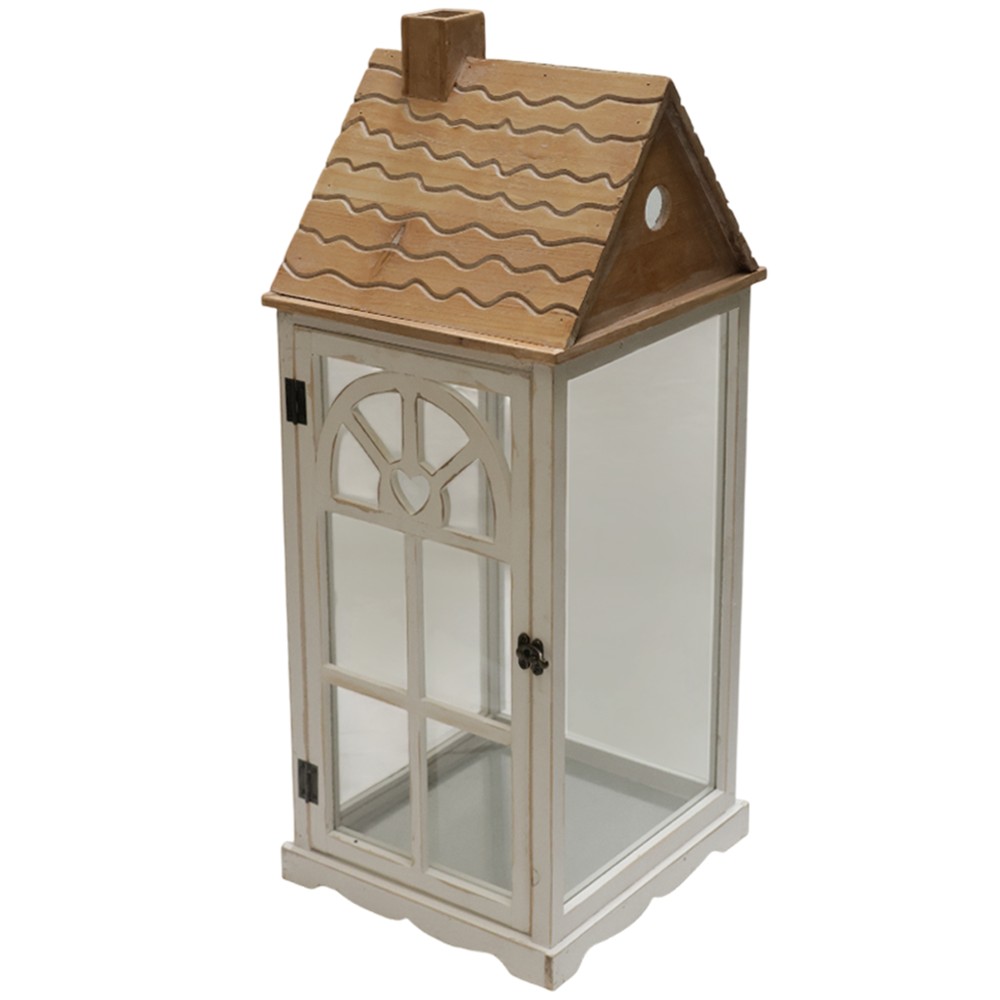 The decorative lantern is made of metal and wood, in white color that gives it a warm and elegant look. Perfect for decorating indoor or outdoor spaces.
