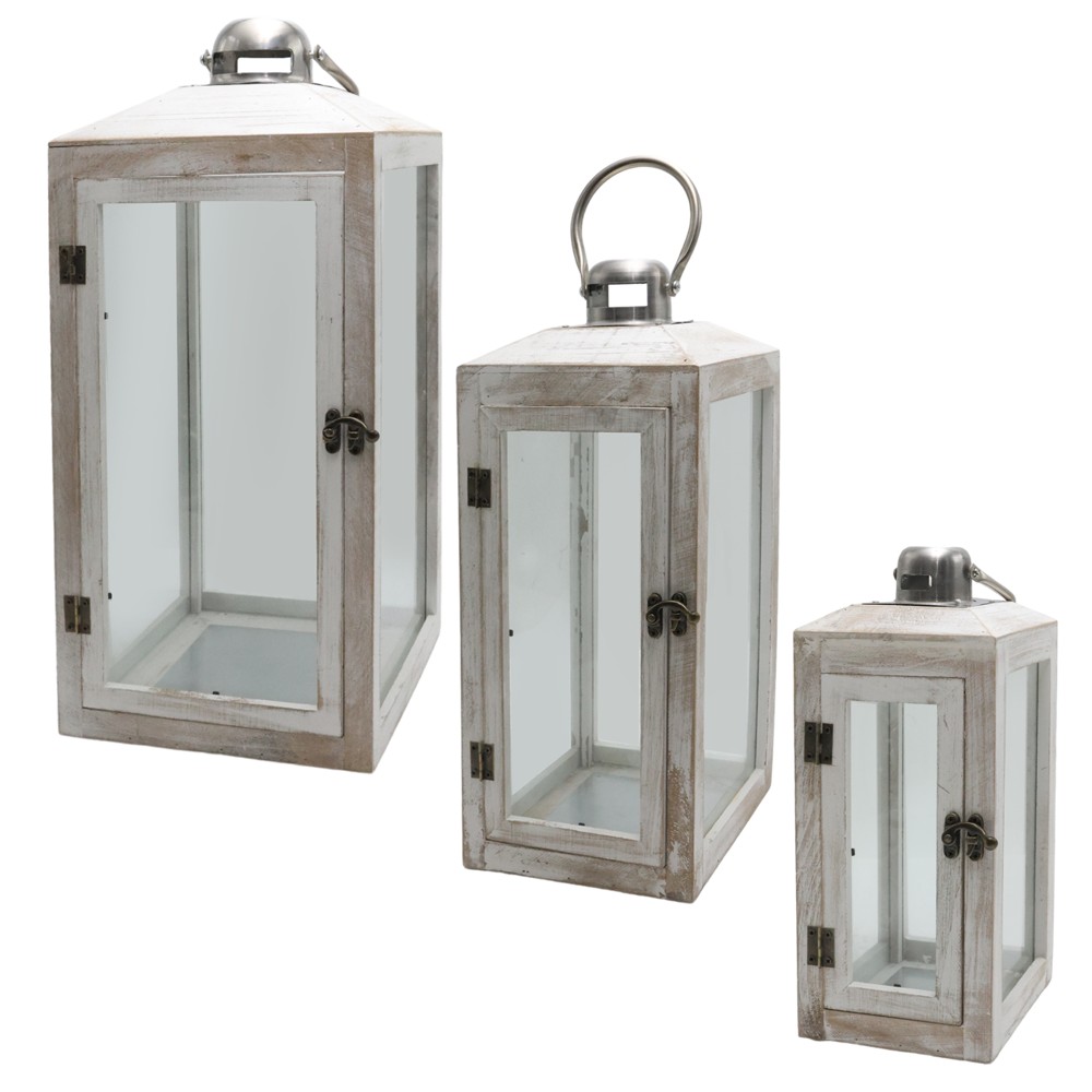 The decorative lantern set is a beautiful and elegant collection of three different lanterns, designed to add some lighting and style to your environment. The exterior of the headlights is made of metal, giving it a solid and durable feel. While the interior is made of glass, which allows the light to burst through the premises in a beautiful and soft way. The set includes three lanterns of different sizes to suit your style and needs: S (12x30 cm), M (16x38 cm), and L (20x44 cm). The white color gives them a clean and modernized look, making them suitable for many types of interior design. This set is ideal to add a special touch and create a warm and wonderful atmosphere in your home.