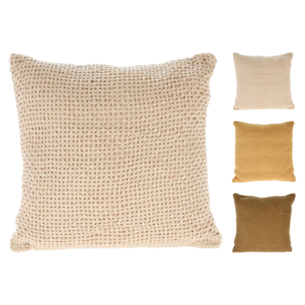 A decorative pillow with a front made of beautifully crocheted material on a cotton base and a smooth cotton fabric back. This combination gives you a unique feel that goes well with both modern and classic environments. The pillow is equipped with a zipper, which allows easy removal of the cover for washing. The pillow case is 100% cotton, guaranteeing softness and natural breathability, while the polyester content offers the right elasticity and comfort of use.
