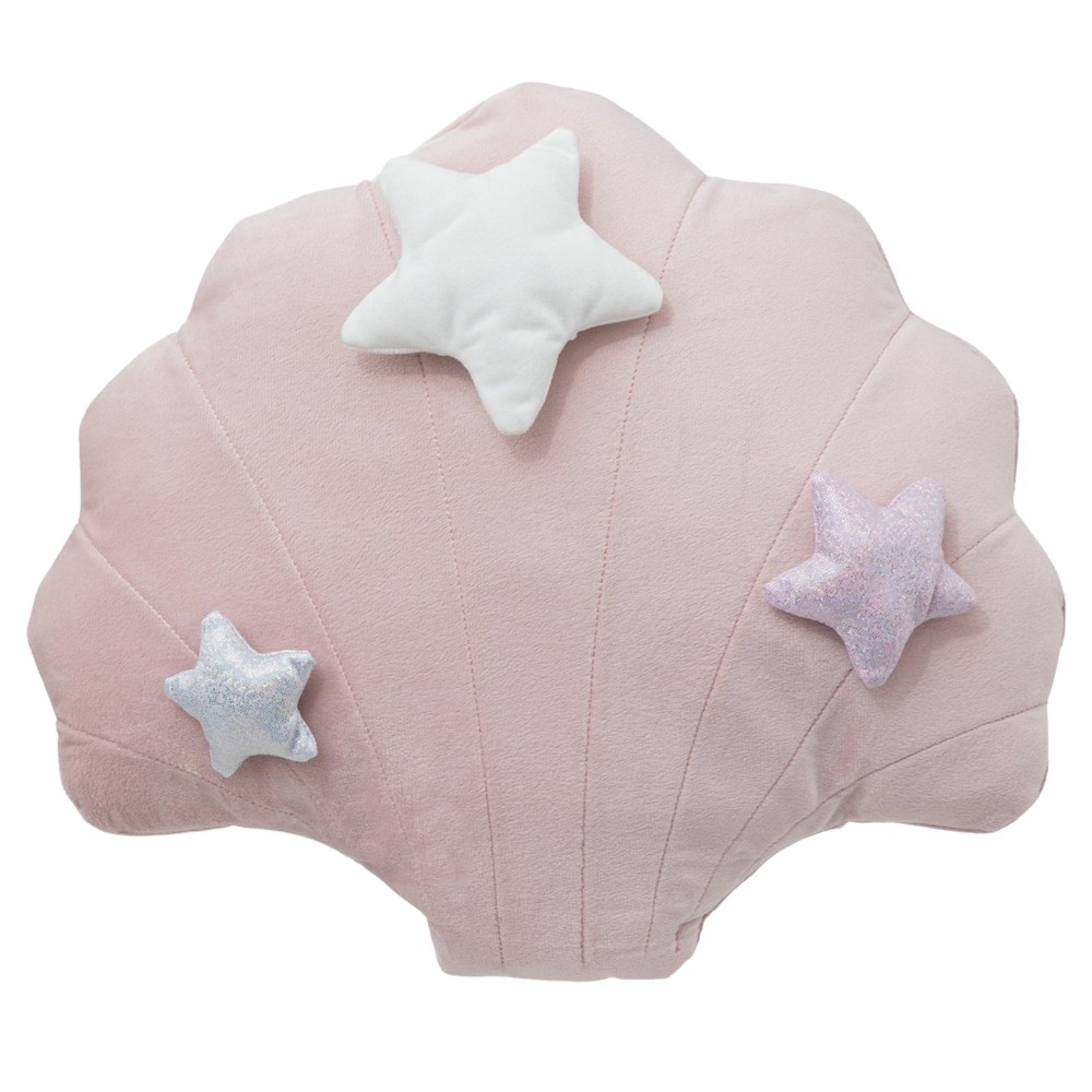 This pillow in the shape of a shell. This cute pillow is ideal for children's room decor. The pillow is made of 100% polyester material.