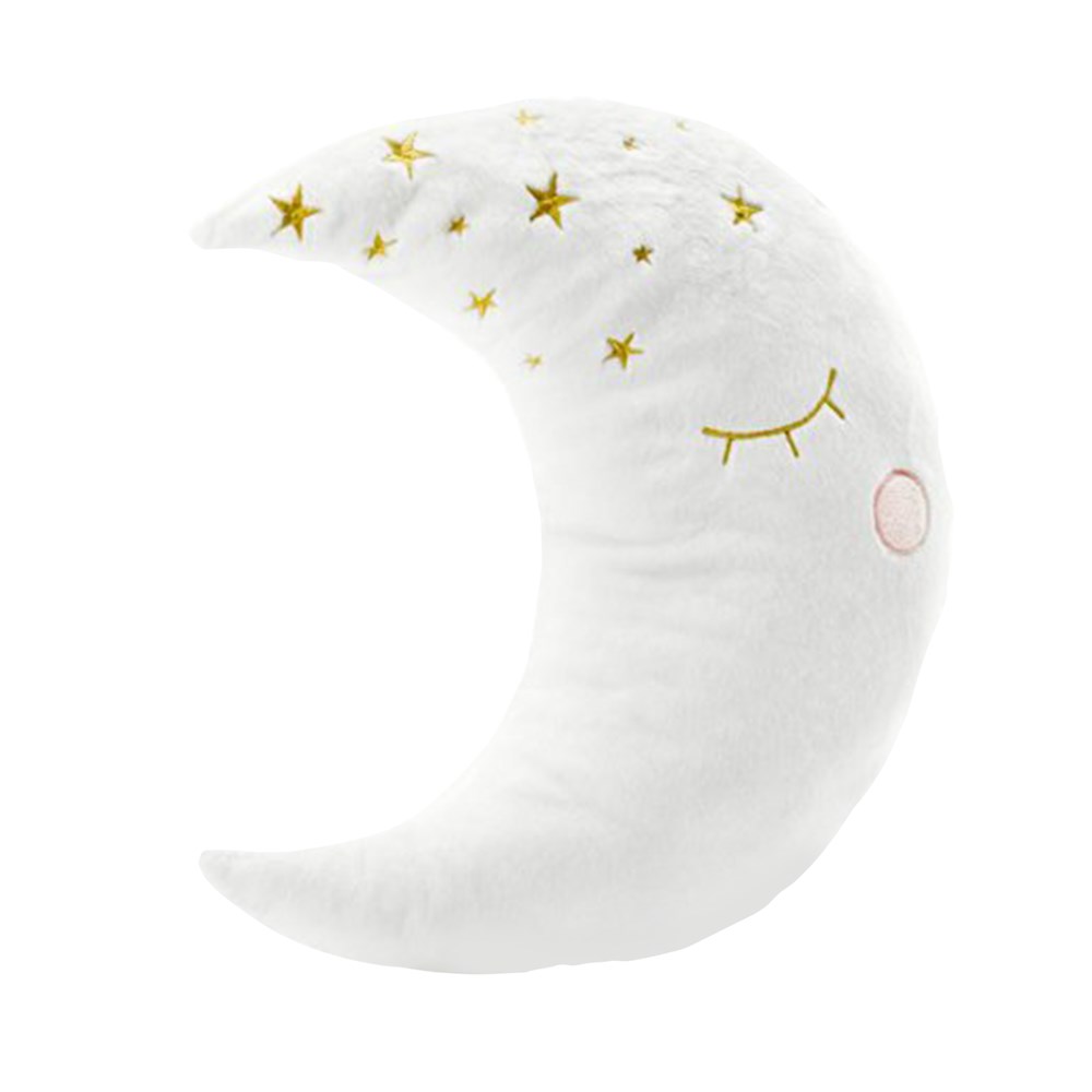 Decorative pillow for children's room with moon decor, made of soft plush material in cream color with details embroidered with filter filling on the inside. dimensions approximately 39 x 40 cm.