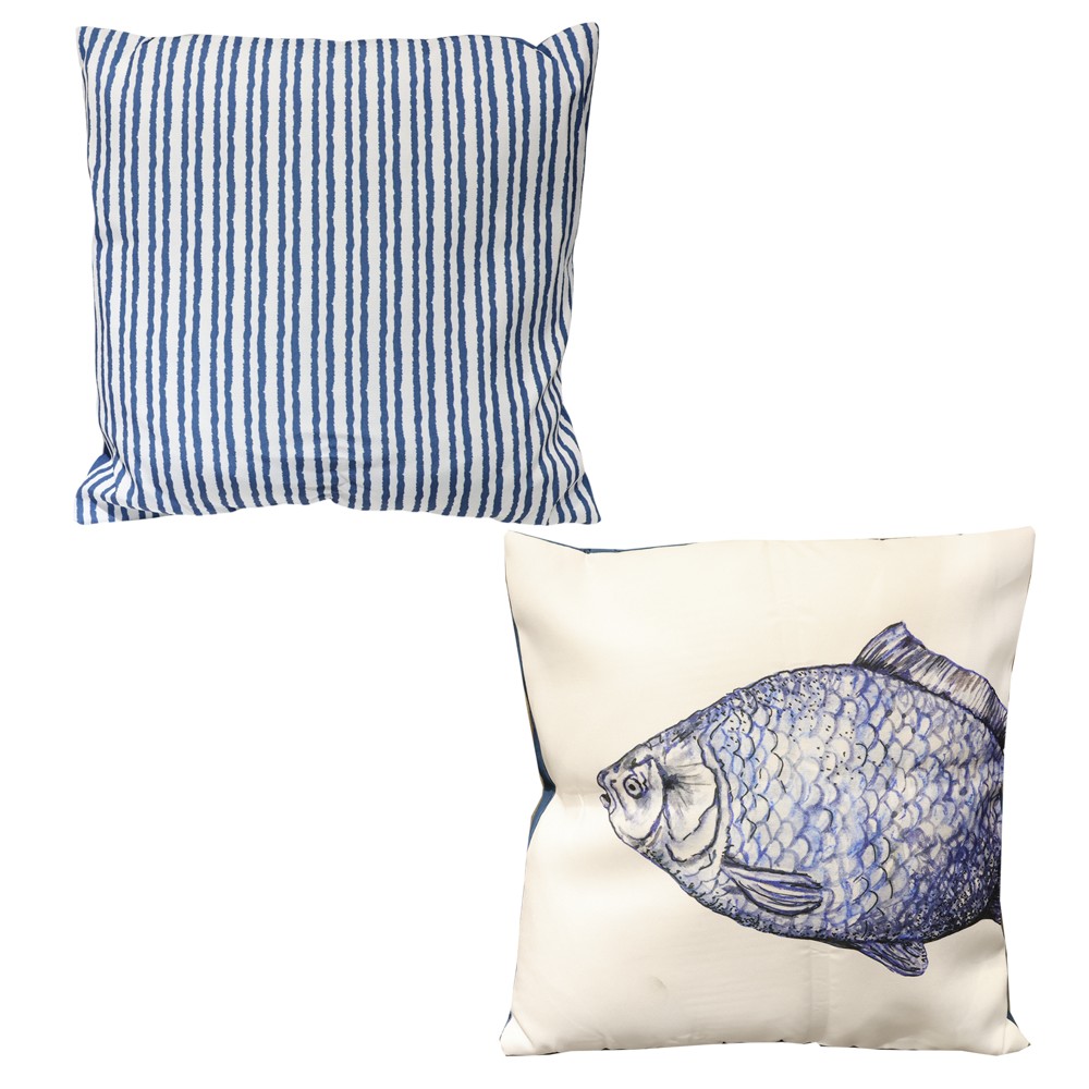 This decorative pillow, crafted from soft and durable polyester, brings a fresh marine touch to any environment. Its unique design featuring a starfish and fish, realized with fine details and vibrant blue colors, makes it an eye-catching centerpiece in your living room, bedroom, or any other space where you want to add a natural and relaxed element. With dimensions of 40 x 40 cm, this pillow is ideal for adding a layer of comfort and style to your sofa, reading chair, or bed. The polyester material is easy to maintain and durable, making it a practical choice for everyday use. This decorative pillow is not just a decorative element, but also a way to bring a relaxed and warm atmosphere to your home.