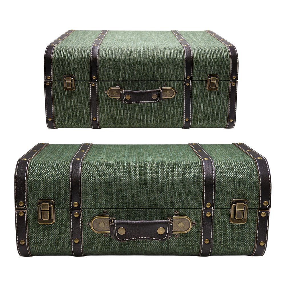 This set of decorative trunks is a functional and aesthetic choice to add style and organization to your space. With two different sizes, the trunks are ideal for storing small items, accessories or textiles, while maintaining a neat and tidy environment. The elegant green color gives it a fresh and refined look, while their classic design makes this set suitable for both modern and more traditional environments.