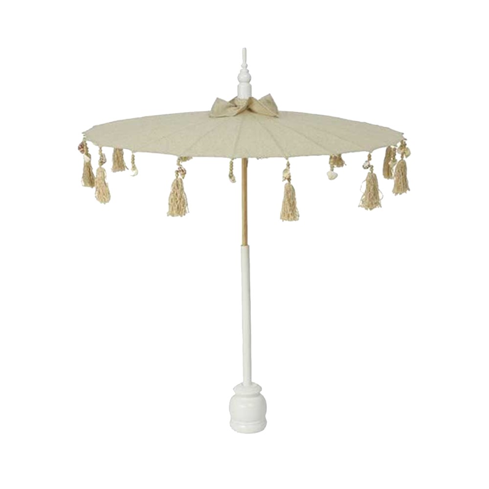 Graceful umbrella with shells 82x106 cm Natural, perfect for decorating your home or to show off a unique look to shelter from the sun. You can also use it as a decorative element in your events.