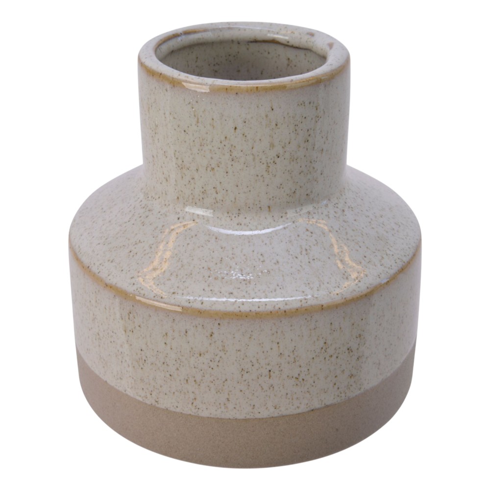 Decorative ceramic vase in white, with a diameter of 10.5 cm and a height of 11 cm. With a compact and elegant shape, this vase is suitable for holding small flowers, decorative branches or dried plants. Its smooth surface and pure white color make it easy to combine with any decoration style, whether modern or classic. Its dimensions make it ideal for placing on tables, shelves or windowsills, adding a simple but refined detail to any space.