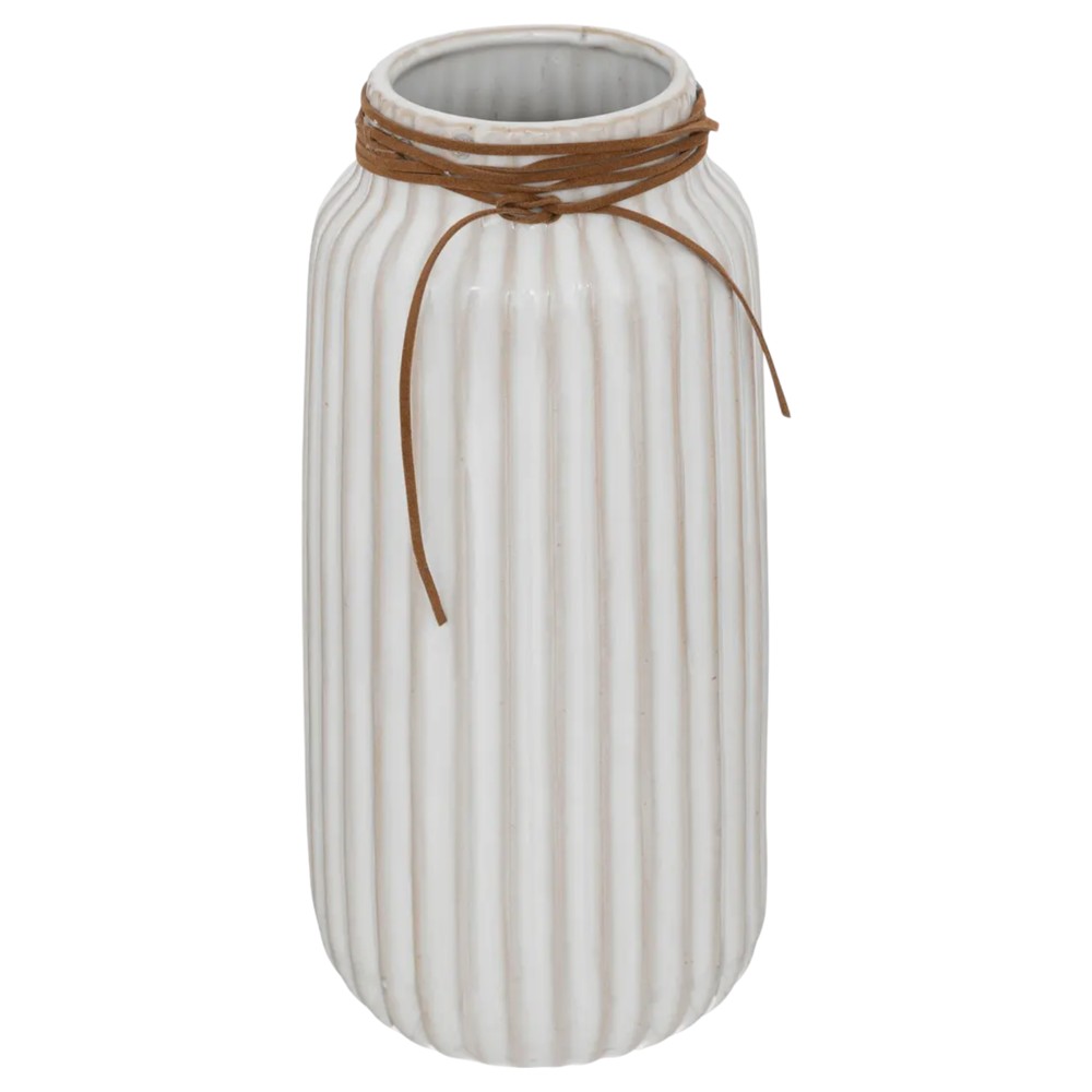 Decorative vase with modern design. It is made of ceramic material in white color with relief design and brown detail. Ideal for the living room, dining room or any other space you want to decorate and add style.