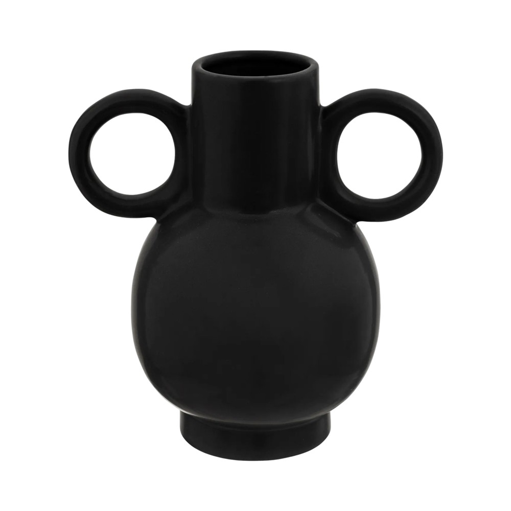This is a decorative vase, designed to display flowers, other decorations, or to serve as a decorative object in your home. The vase is black, a classic and elegant color that fits many interiors. The vase has a length of about 21 centimeters (21 cm), a width of about 14.5 centimeters (14.5 cm) and a height of about 22 centimeters (H22 cm), making it suitable for placing various flowers.