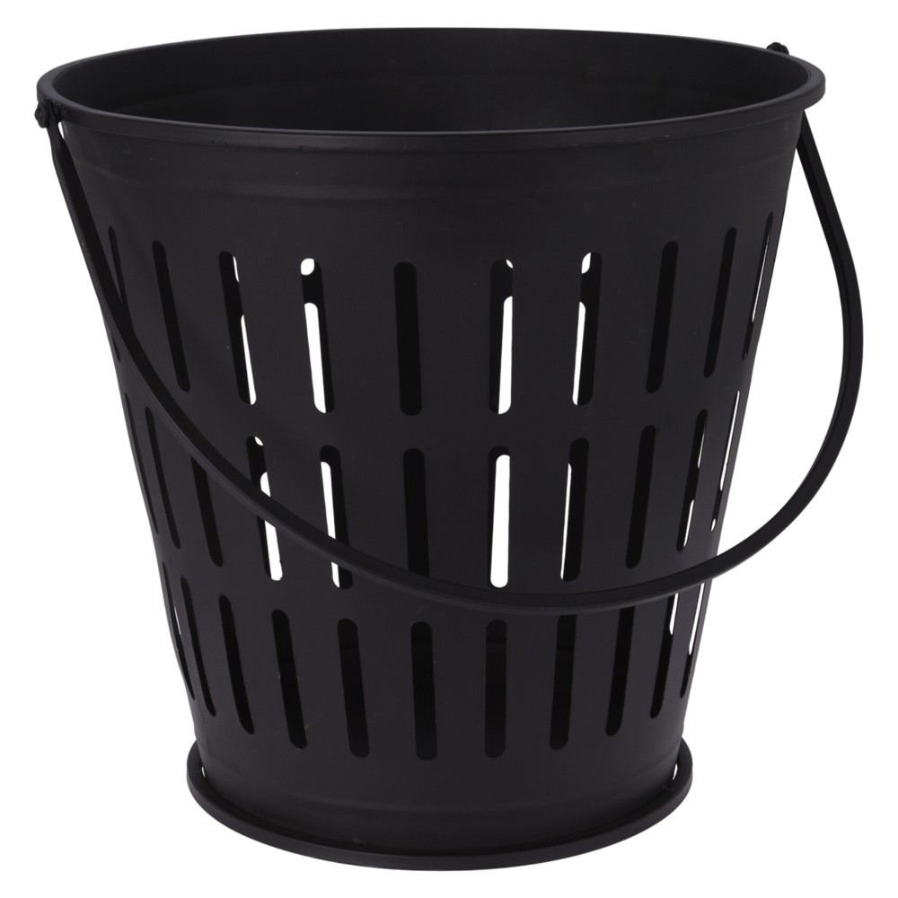Perfect for outdoors. The brazier has a diameter of 38.5 cm and a height of 38 cm. Constructed of black metal. It has a comfortable handle that makes it easier to hold. The brazier is shaped like a basket. It can be used as a decoration, but also to keep the wood near the fireplace.