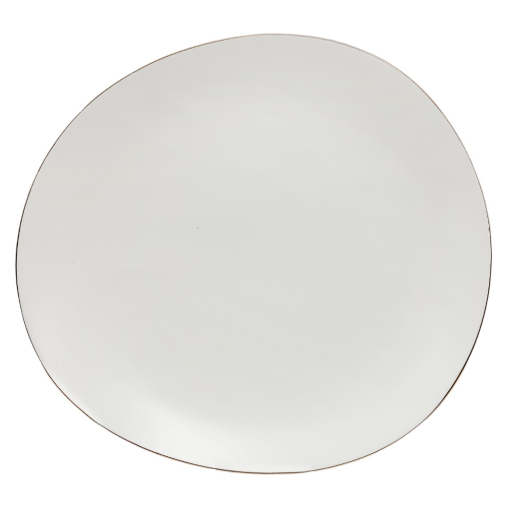 The shaped serving plate made of ceramic, in white, offers an elegant and modern choice to present food in a sophisticated way. With dimensions of 27x25 cm, it has a special shape and can be used to serve salads, antipasti, or main dishes in a stylized way. The white color gives a clean and fresh touch, making it suitable for many decor styles. Ceramic materials make it durable and suitable for daily use, while the deformed shape makes it attractive to the eye and practical to use.