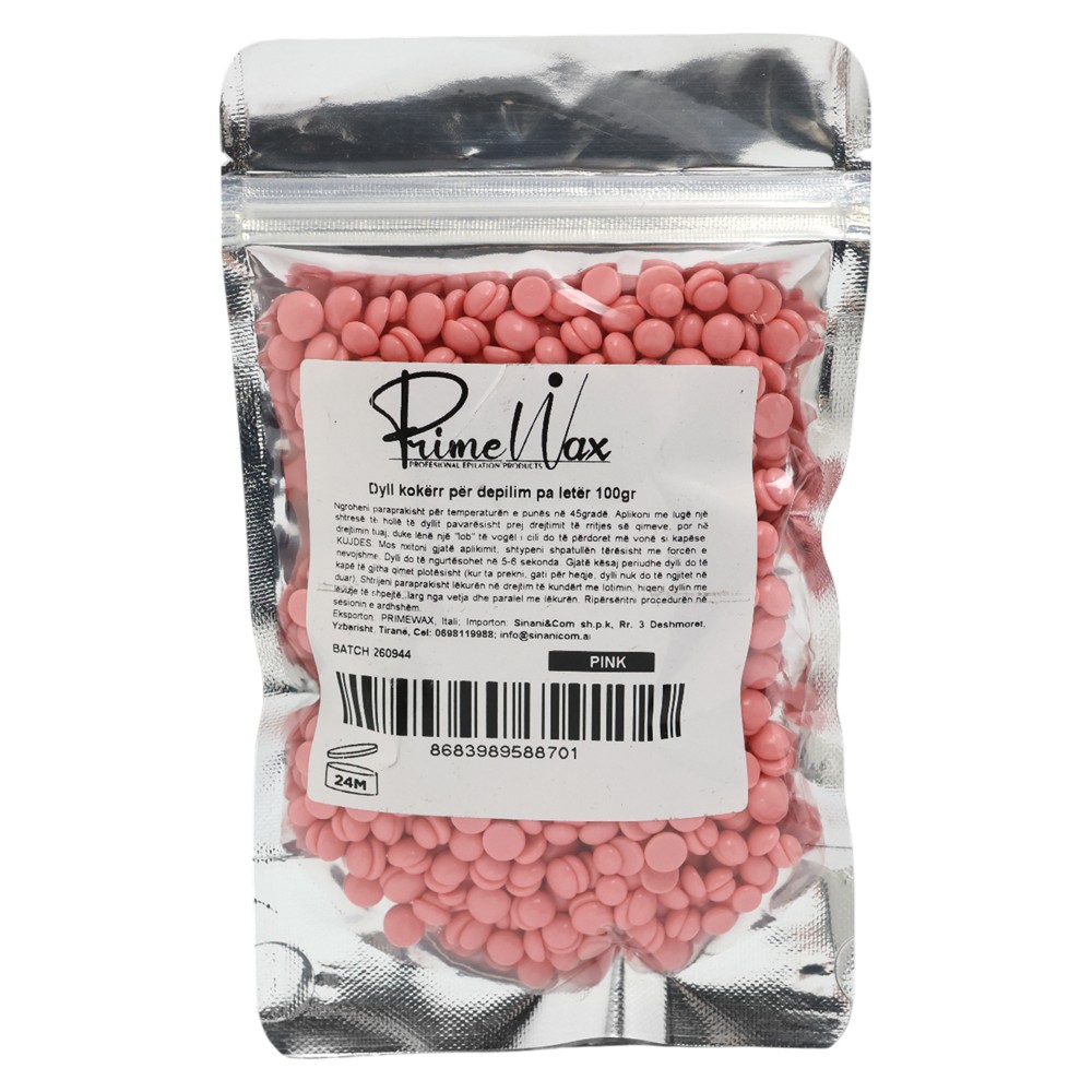 Prime Wax Epilator, pink in color, is formulated to provide effective hair removal. It comes in a 100 gr package and is suitable for use at home or in professional salons. It offers a lasting result, leaving the skin feeling soft and free of irritation. Its use is simple and quick.