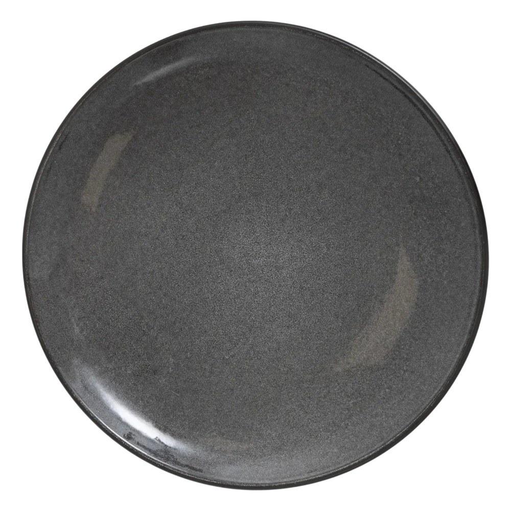 Serving plate in gray color with black detail. It is made of ceramic material. The ideal dish for your meal. The simple and stylized design makes this plate suitable for everyday use or for specific events, adding a special elegant touch to your table setting. The serving plate is an important part of your gastronomic decor.