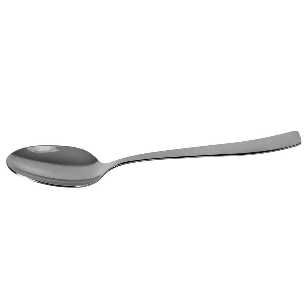 Spoon for dessert / fruit ABERT produced in Italy with an elegant design and made from 2.2mm spresor highest quality 18/10 stainless steel. It is suitable for any restaurant or family use. Form the tail line which closes the square is very elegant and practical to use. It is very hygienic and has a long usage time. Line ABERT comes to you complete making your table always look tidy and perfect.