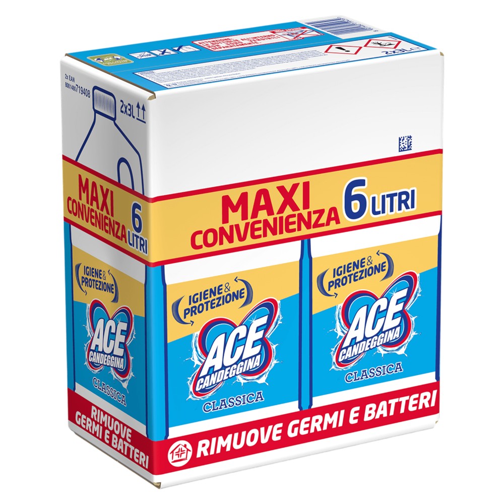 Ace Candegina Classica detergent offers deep cleaning and effective whitening. With two packs of 3 liters, this powerful formula helps eliminate bacteria and preserve the whiteness of clothes. Ace provides excellent results, making the cleaning process easier and more efficient. Suitable for everyday use in any home.