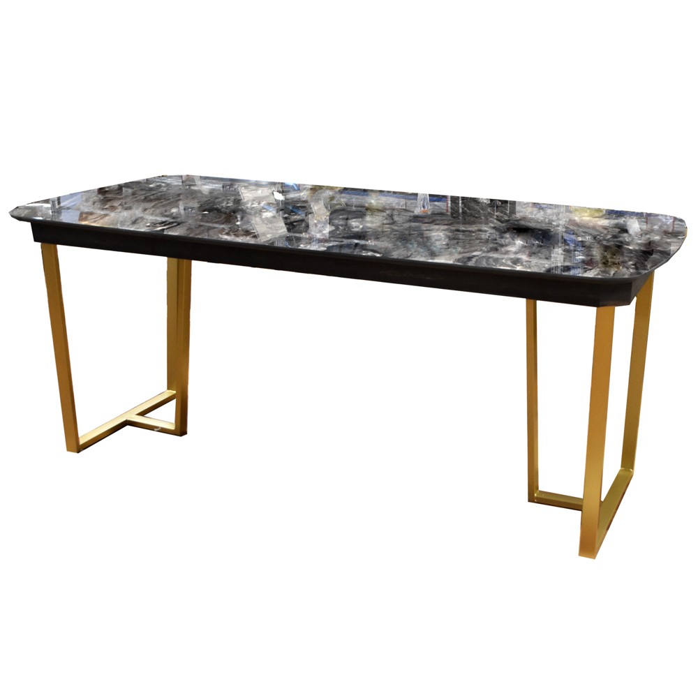 Dining table, Aya, chipboard tabletop (black), metal frame (gold), 180x92x79 cm