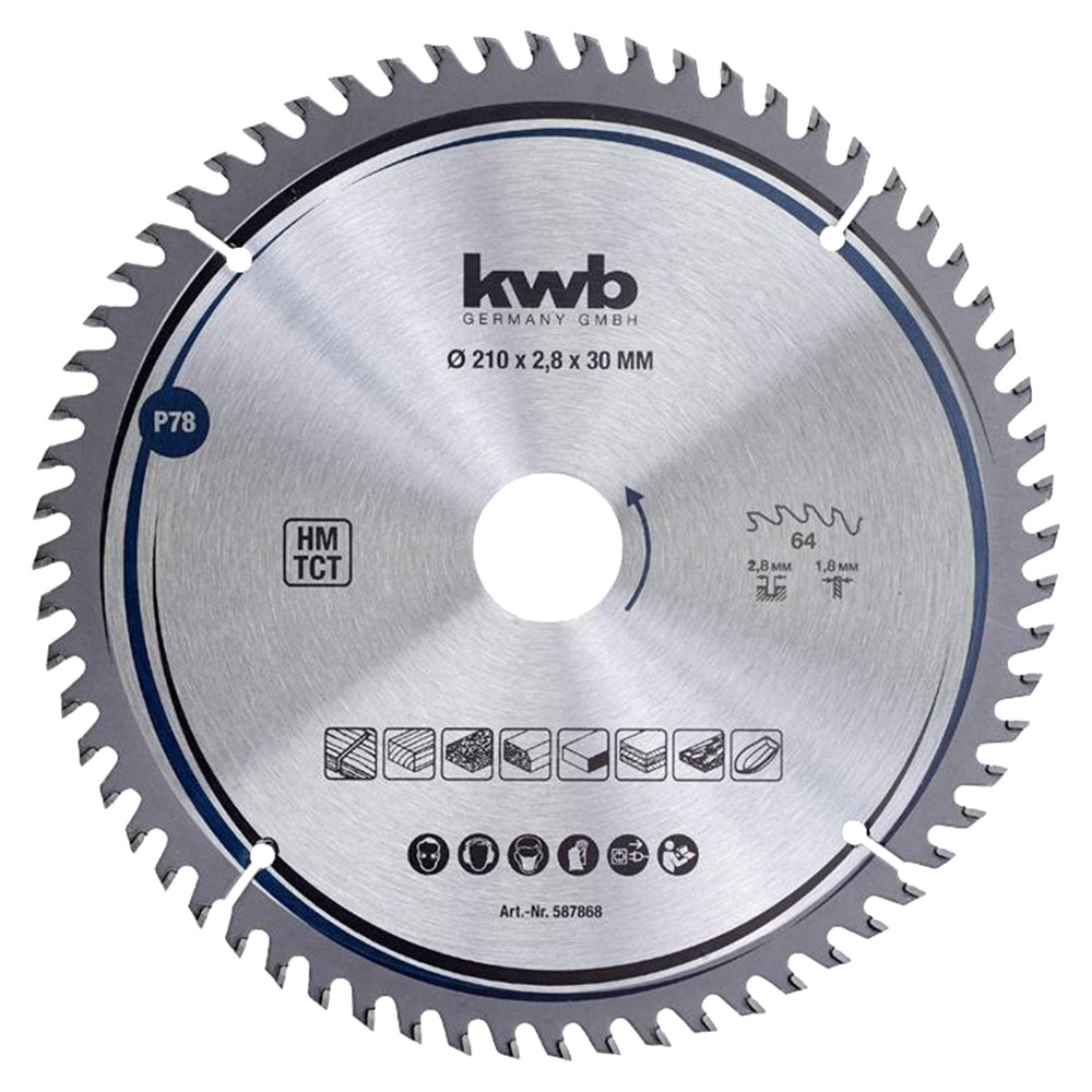 Ideal for cutting wood with circular saws. The numerous teeth eliminate chipping and damage to the wood surface. Suitable for standard 210 x 30 mm disc saws