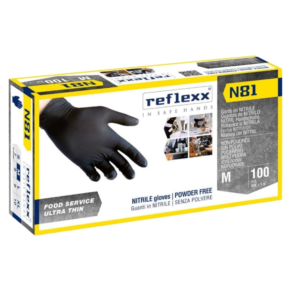 Disposable work gloves, Reflexx, nitrile, powder-free, size M, 100 pieces, black