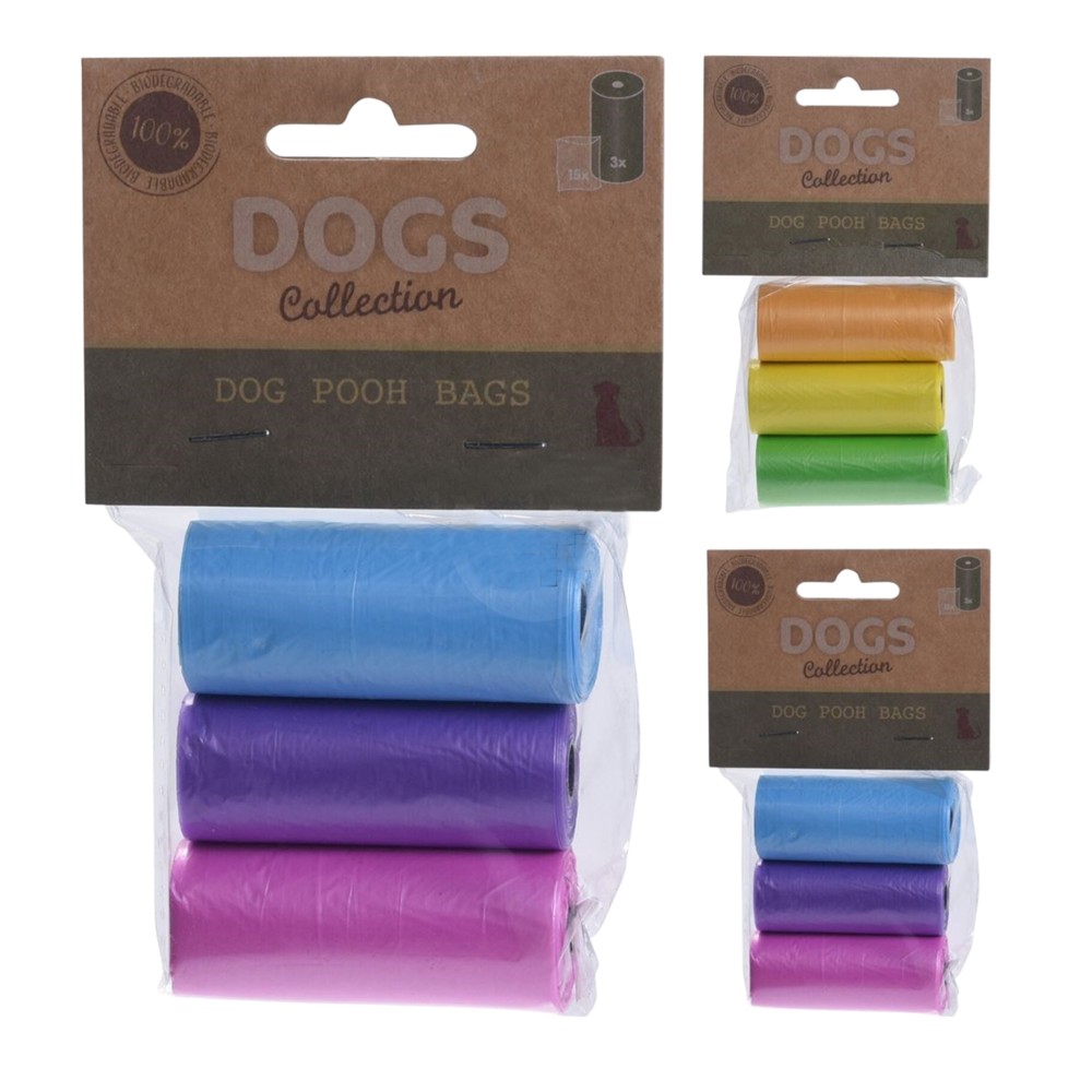 Dog Poop Bag, Dogs Collection, 3 X 15 Bags, Mixed Colors