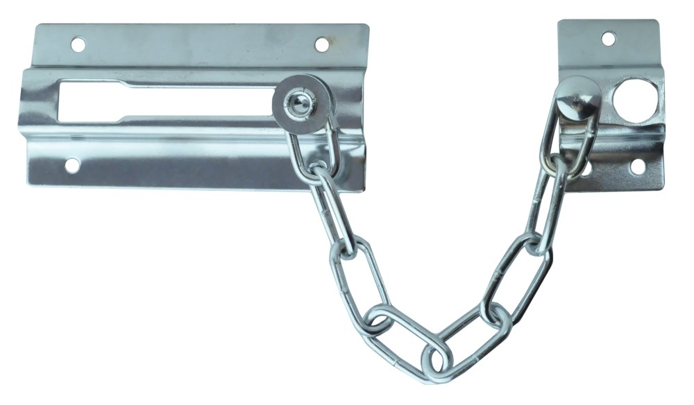 This chain door guard is constructed from steel and comes plated in chrome. It is used to secure your door while allowing room for viewing or ventilation. It comes complete with fasteners for a quick and easy installation.