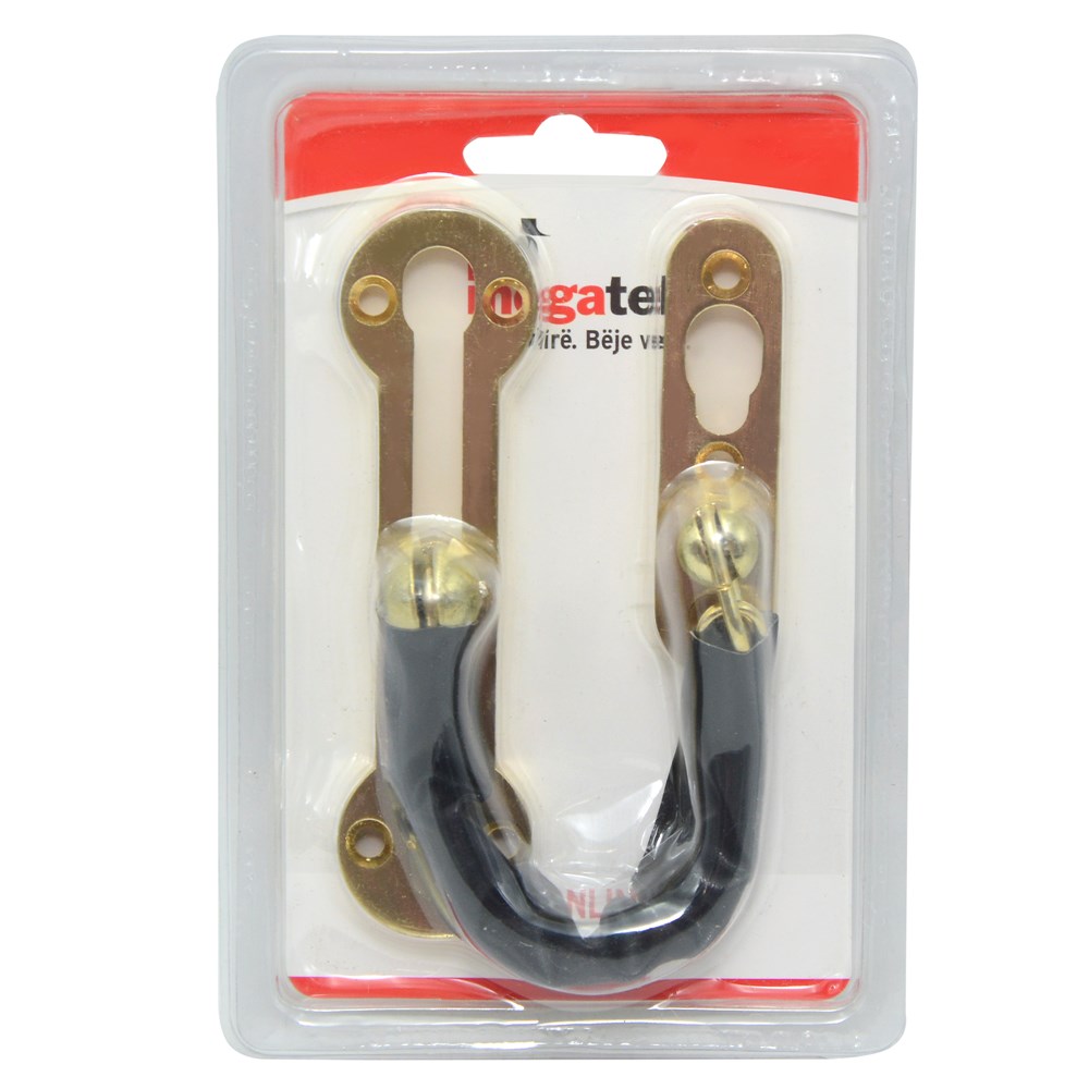 This chain door guard is constructed from steel and comes brass galvanized. It is used to secure your door while allowing room for viewing or ventilation. It comes complete with fasteners for a quick and easy installation.