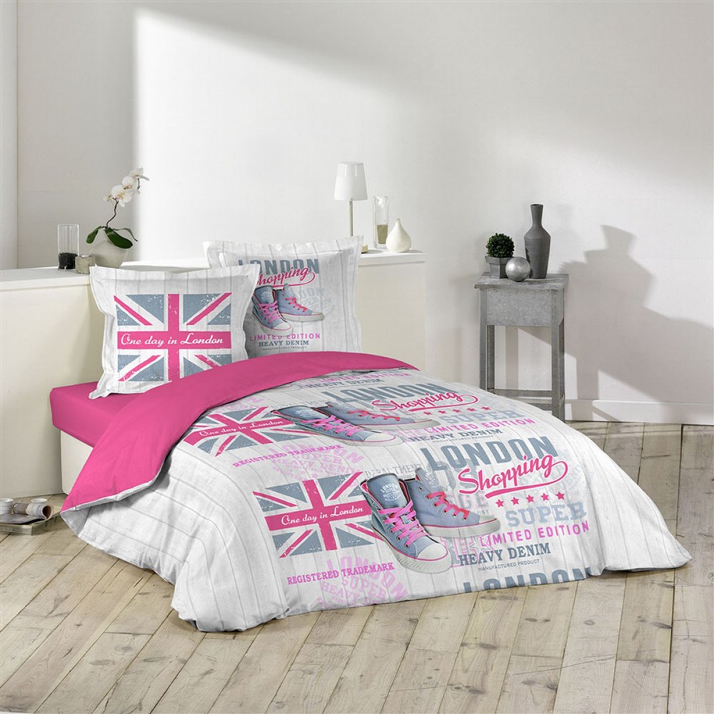 Double bed linen dhe pillow case, GIRLY LONDON, cotton, colorful, bed linen: 240x220 cm (x1), pillow case: 63x63 cm (x2)