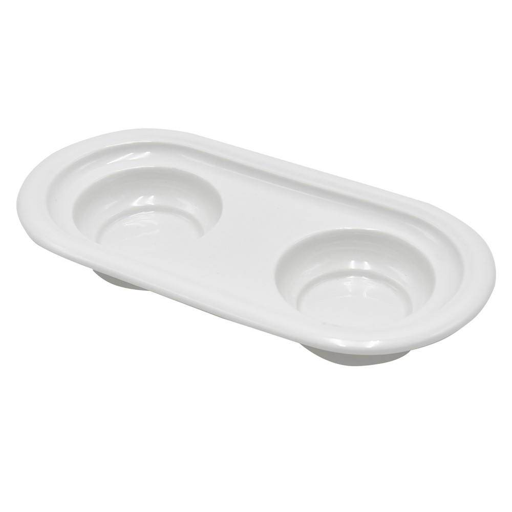2-space bowl, very convenient to serve up to two different sauces at the same time. Good quality porcelain with competitive price.