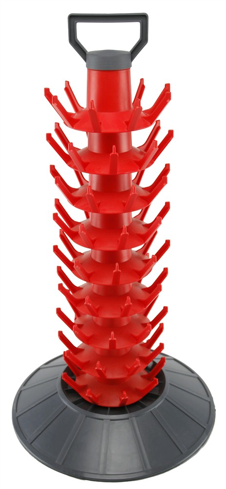 Bottle drainer with 81 seats for draining bottles of different sizes after washing. Consisting of 9 floors which you can mount or not, depending on the amount of bottles.