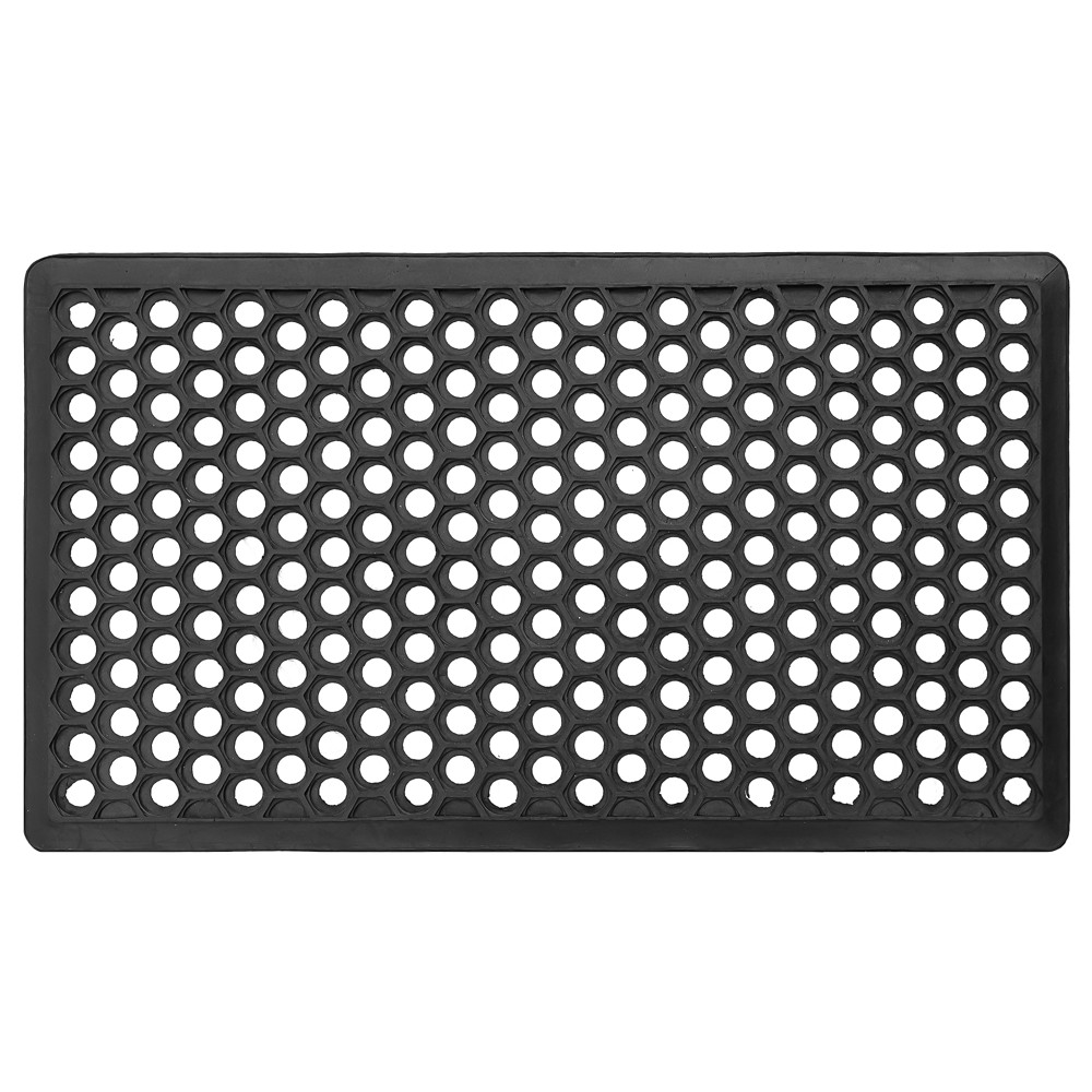 The product "Drop door mat" is a mat designed for indoor use to contain and absorb water, dust, and other contaminants from the feet of persons entering the home or other indoor areas. Made entirely of rubber, this mat offers a durable and effective solution to cleaning your feet.