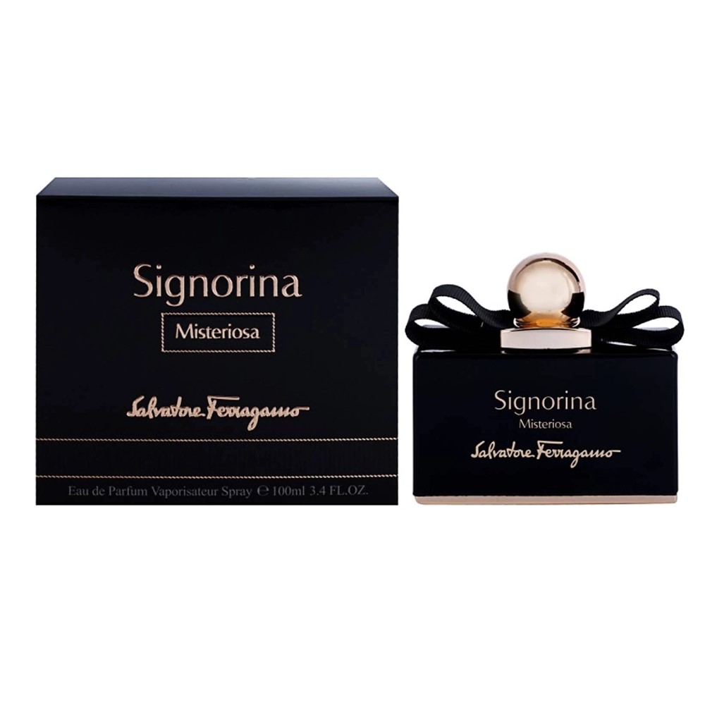 Eau de parfum (EDP) for women, Signorina Misteriosa, Salvatore Ferragamo, glass, 100 ml, black and gold, 1 piece