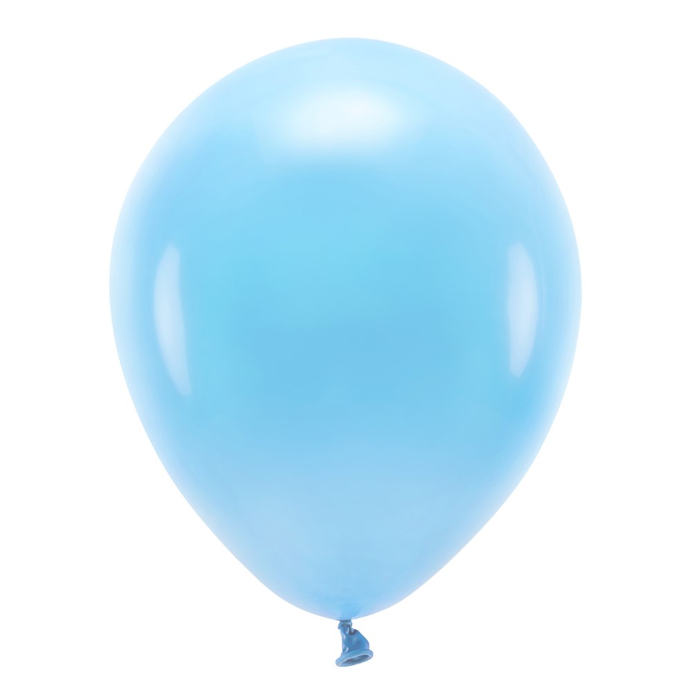 Eco balloons which are biodegradable because they are made of 100% natural rubber. It is an environmentally friendly material. Dimensions: 26 cm pastel, light blue. Packing 100 pieces