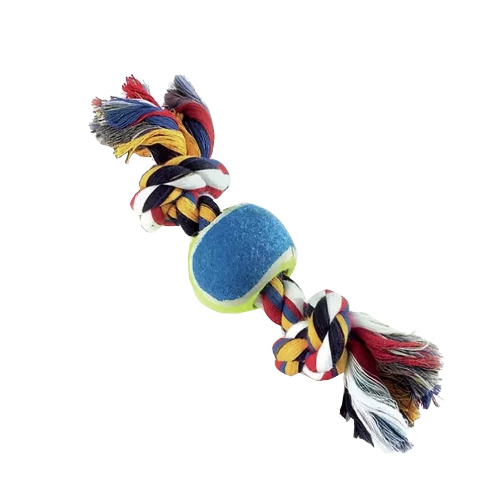 This sturdy and durable toy will delight your pet! Your dog will have fun with this bone made from a cotton rope tied with a tennis ball in the middle.