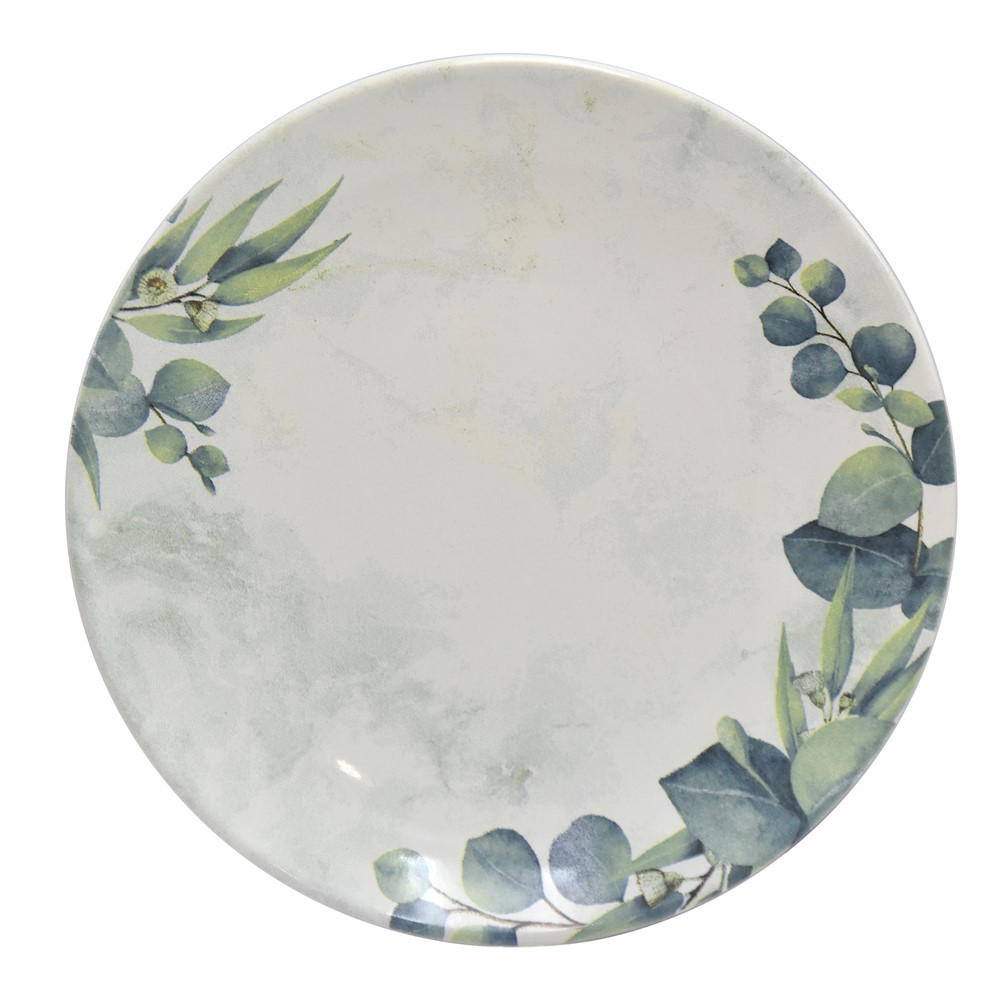 Plate suitable for serving desserts. White color with leaf design, quality ceramic material.