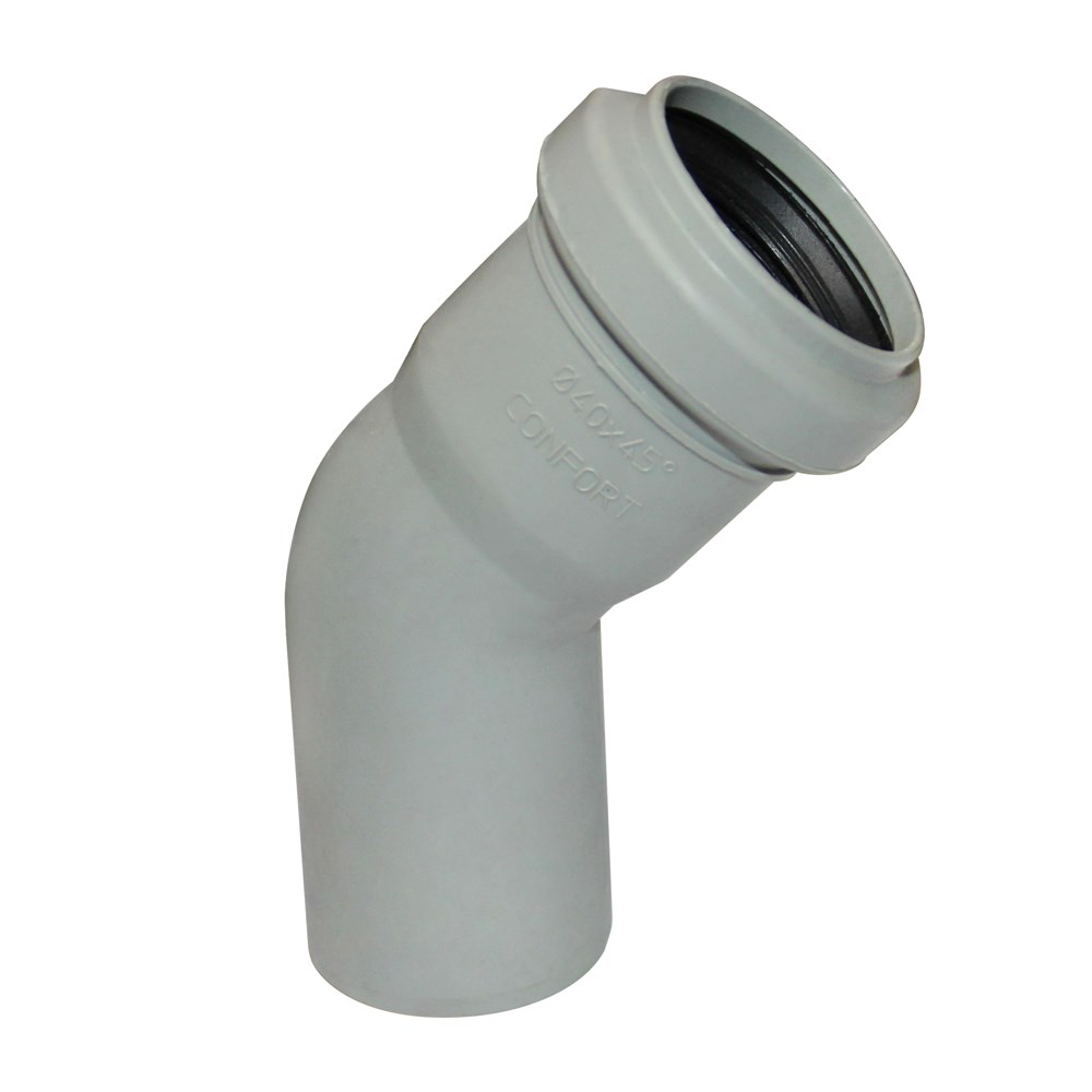 Elbow, polypropylene, Ø40mmx45°, with rubber