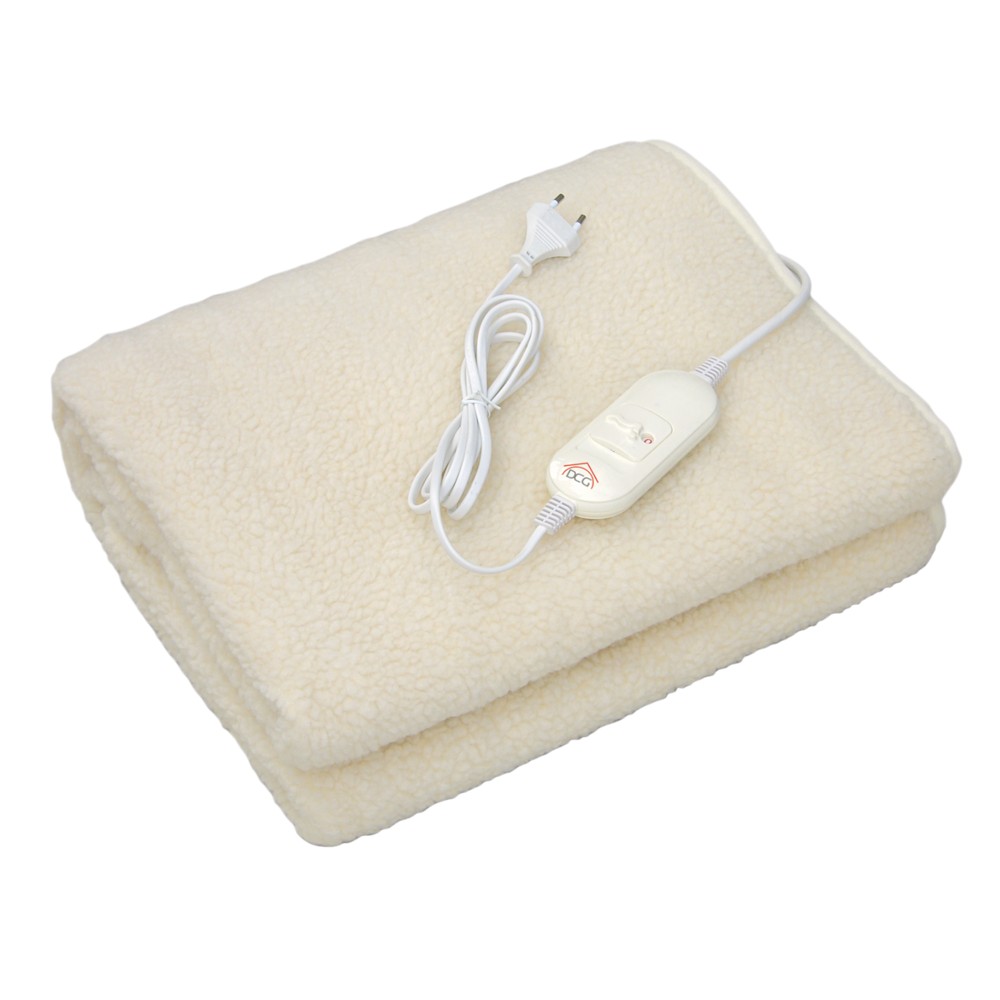 Synthetic wool electric blanket, to be placed under the sheets to enter a bed that is already nice and warm and dry. Turn off before bedtime. Detachable connector, 3 selectable powers, LED switch, power supply. A classic for the winter! Dimensions: 150x80cm. Power supply: 230V - 50Hz, 60W.