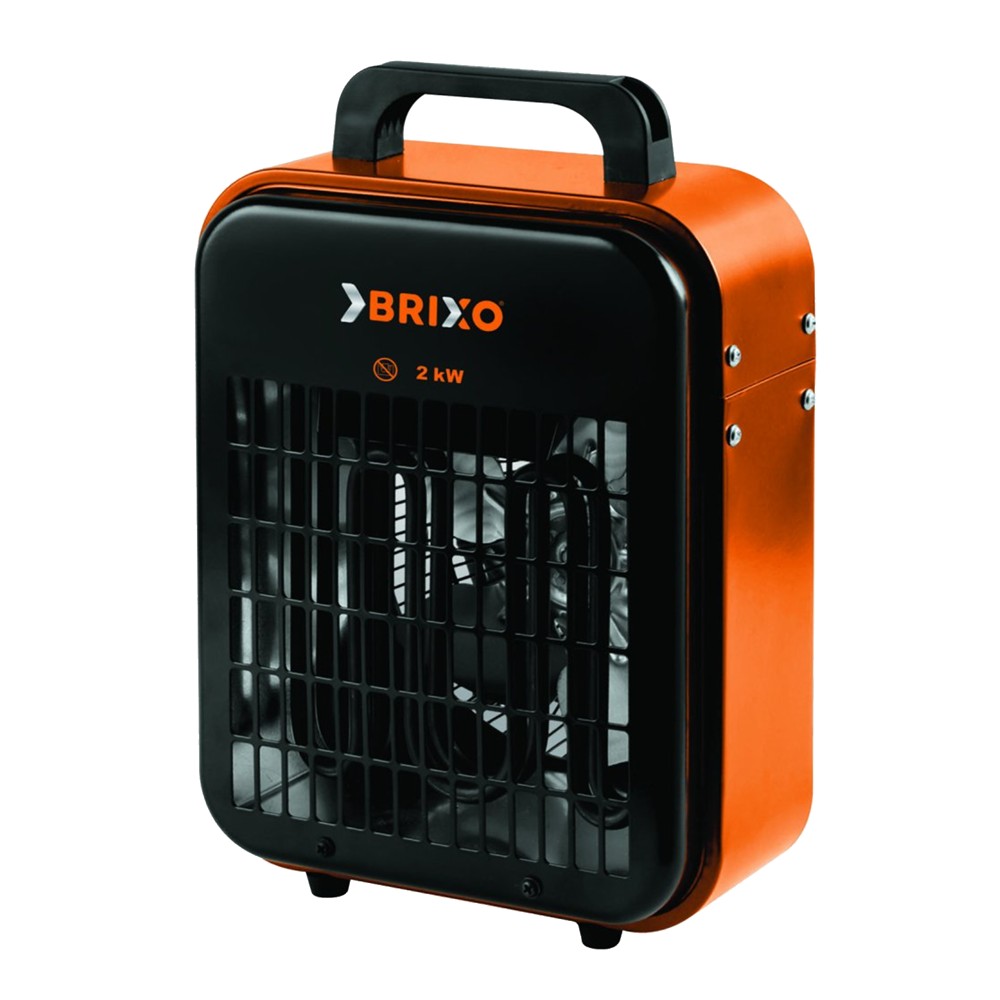 Electric fan heater stove portable electric heat generator Brixo FAN 2000W. Practical, light and compact so you can take it wherever you need it. Three selectable power levels 25/1000/2000 Watt. Stainless steel fan to improve efficiency and flow. Stainless steel components and all other devices ensure double protection against overheating and improve product efficiency. It includes a thermostat and a power regulator with three intensity levels . Thanks to the IPX3 protection against water and dust, it can be used in humid and wet areas, such as bathrooms or cellars. The insulated plastic handle allows for easy transportation. Polished powder coated metal body to prevent rust formation and maximize product life. Ideal for use in garages, laboratories, workshops, cellars, construction sites, camping, campers, caravans and in any other work environment.