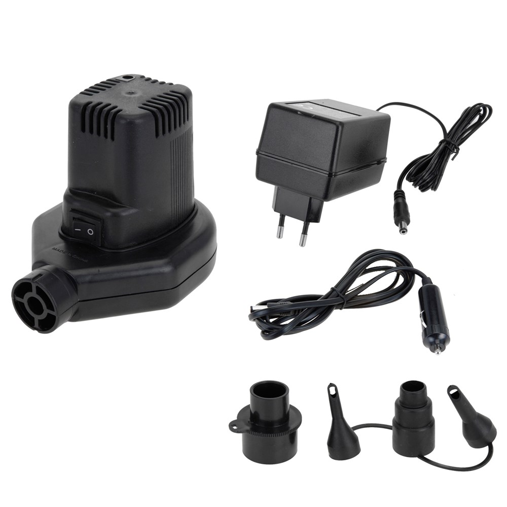 Practical electric inflator. Adventure goods that will solve your problems. . This device (power: 60 W - voltage: 12 V) is ideal for inflating or deflating any object. It works by connecting to the cigarette lighter socket of the car. Includes all necessary accessories. With power adapter, input voltage: 230 V, 50 Hz, 0.5 A - output voltage: 12 V, 4500 mA, and connection cable to the lighter 180 cm.