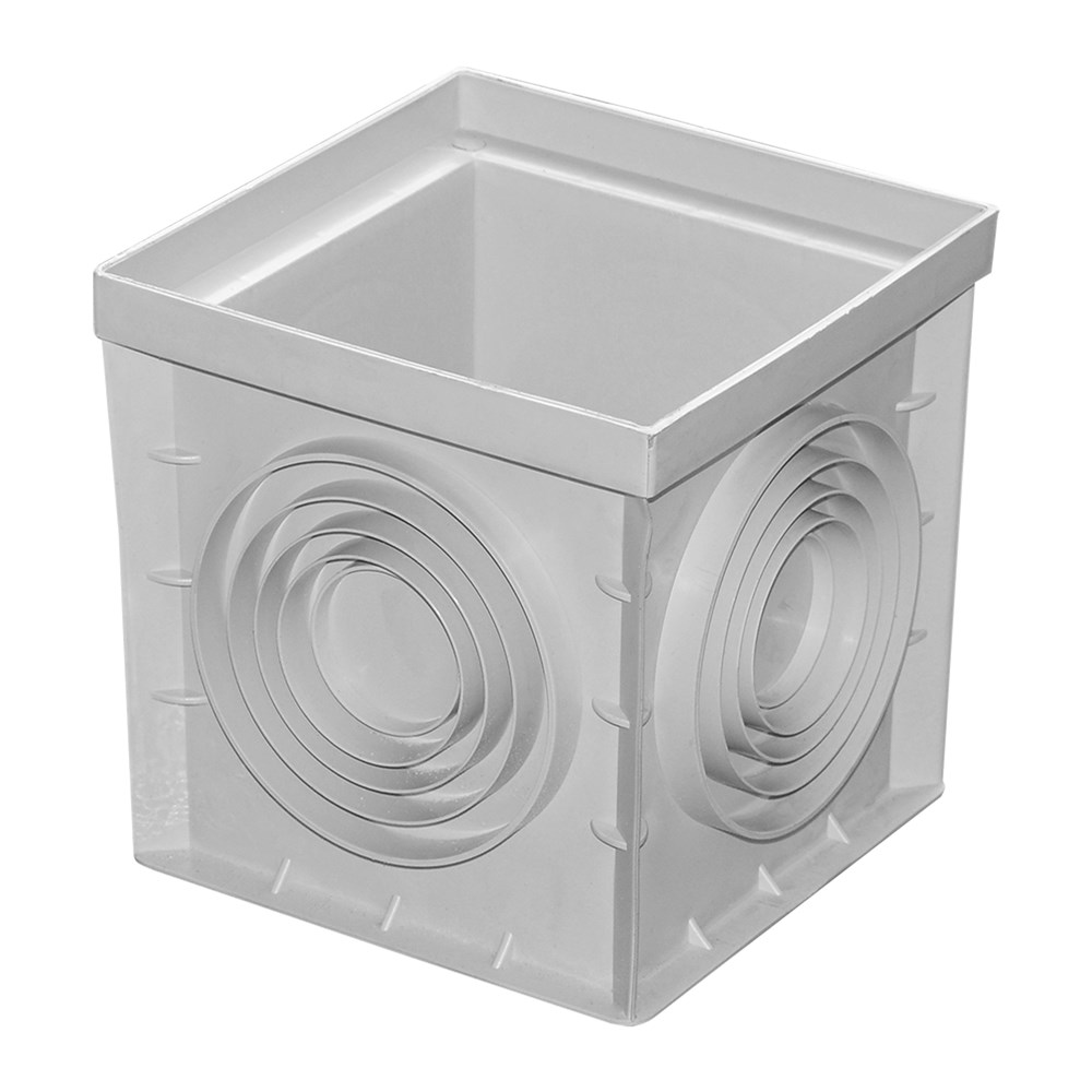 Manufactured and made in polypropylene, the line of catch-pits is a good alternative to the concrete catch-pits. Low weighted, perfectly stackable, they can be used as extensions of themselves in case of placement in deep diggings. The practical inlets and outles on the sides allow a fast and accurate connection to the pipes. All the accessories, from end-caps to gratings and frames, enlarge the application fields and allow the compatibility with the concrete catch-pits.Main characteristics: Light weight for easy transport, positioning and installation, even by a single person, High resistance thanks to the side rounded reinforcements that avoid breakages at the corners. Pipes of every sizes can easily fit thanks to the special pre-cutted concentric shape of the side holes. Space reduced to the half, thanks to the hi-stacking features Compatible with relative PP catch-pit cover and grating.Used as an excellent alternative to traditional concrete catch-pits.