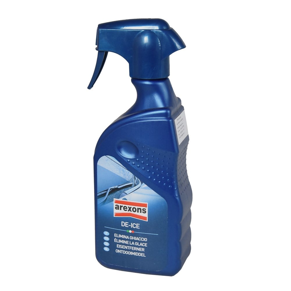 Arexons De-Ice, is the specific product for dissolving and eliminating ice quickly from windscreens and glass, cleaning surfaces and ensuring perfect visibility. Its specific formula, when sprayed onto glass before the temperatures drop, prevents ice forming.