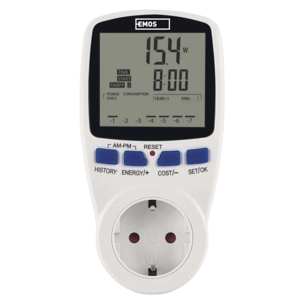 This EMOS power meter, also known as a wattmeter, is a reliable energy monitoring device designed for accurate measurement of electrical power consumption in your home or small business. It's a valuable tool for understanding your energy usage and identifying potential areas for savings. Maximum load