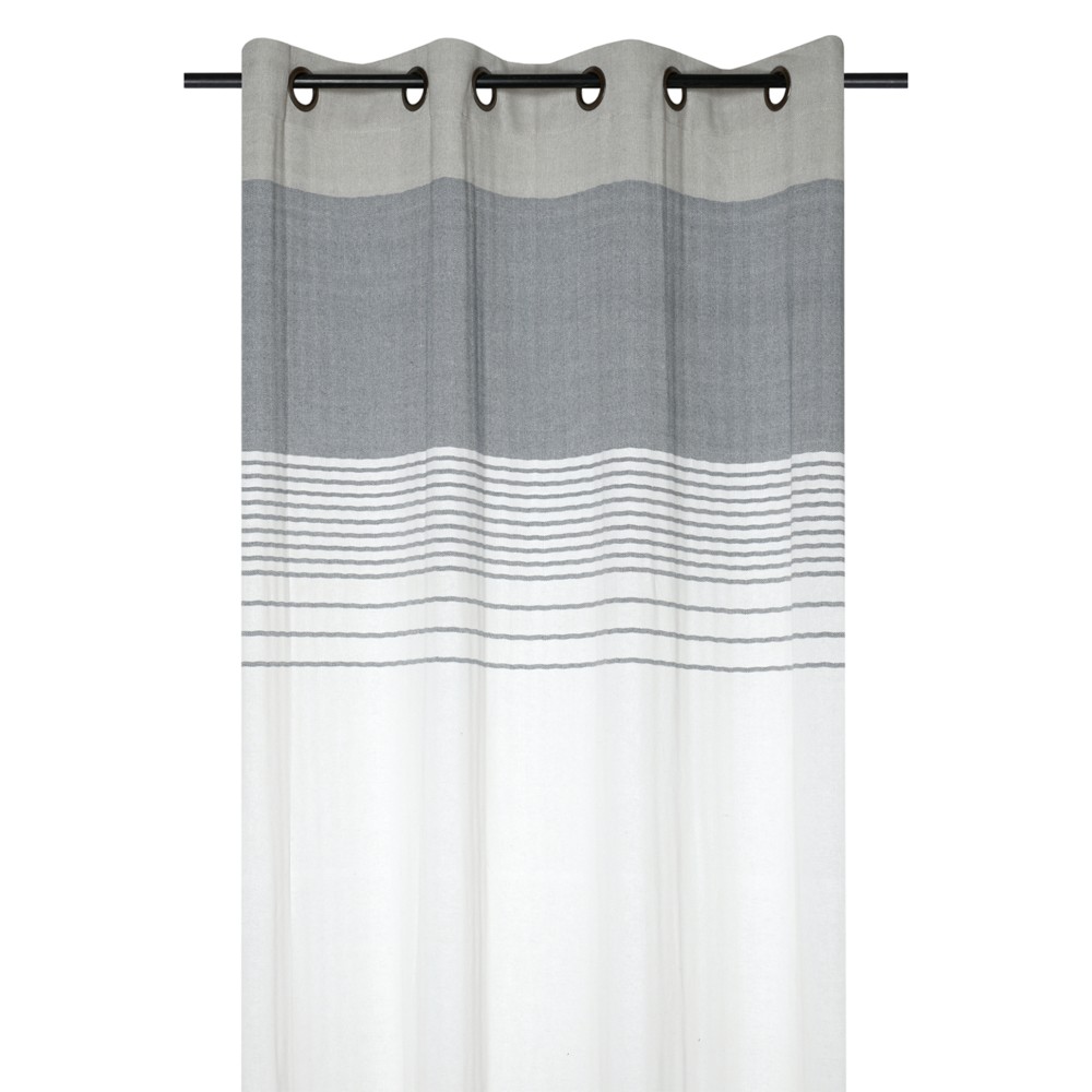 Escale full curtain with rings, cotton, white and grey, 140x260 cm