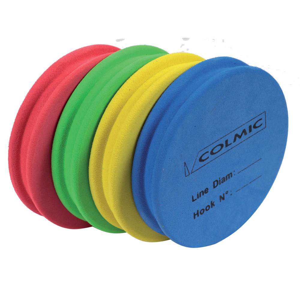 Eva spool reel, Colmic, Neoprene, 9 cm. Compact round shaped foam fishing line bobbin spools, Ideal for hooks and fishing line pre made course. Winding fishing hook and fishing line around the foam reel after fishing can protect hook, line and fingers from getting damaged.