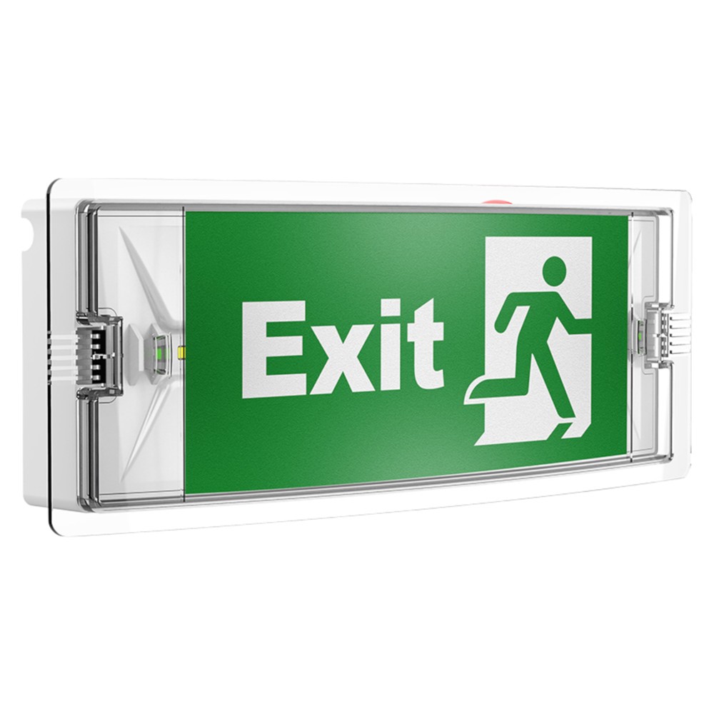 EXIT sign, rechargeable, 3W, 6500K, 100lm, IP54, 120min working time. Emergency LED exit sign light is ideal for small spaces such as restaurants, shops and offices. This light will guide customers and employees to which side the exit is. The LED emergency light brings together everything you have come to expect from an emergency light.