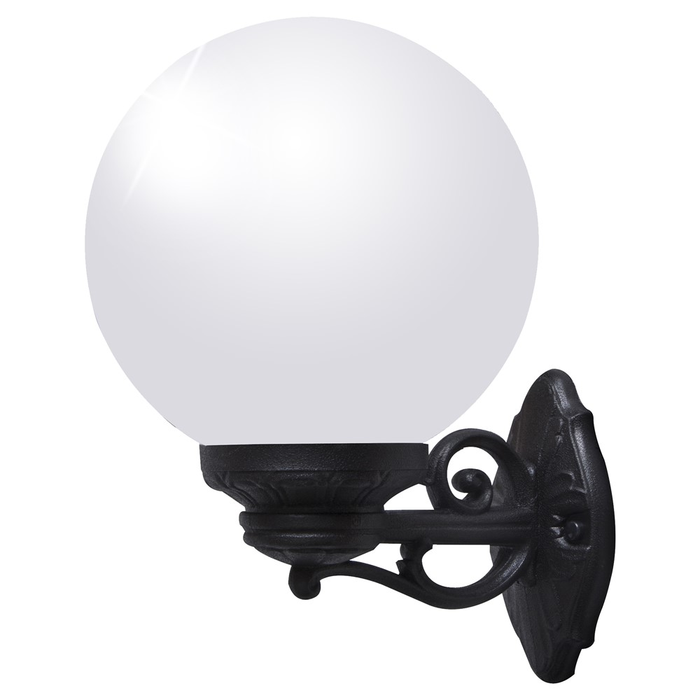 Exterior globe wall light, Fumagalli, black, white globe, 1 x E27, D25 cm, H30 cm. Add beauty, elegance and functionality to your outdoor spaces, for more pleasant evening with friends and family in your gardens or terraces lighting is an unsubstituted element and an excellent choice would be the resine radiant with a fin design and stylish.