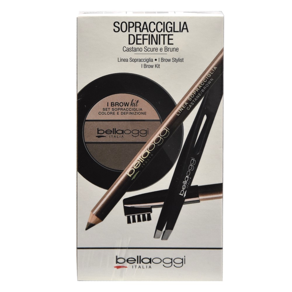 Eyebrow makeup set, which contains a pencil to strengthen the color and structure the shape of the eyebrow, a pair of tweezers, an eyebrow brush and an eyebrow highlighting powder palette, in three colors. This set is suitable for daily use and is practical thanks to its small size.