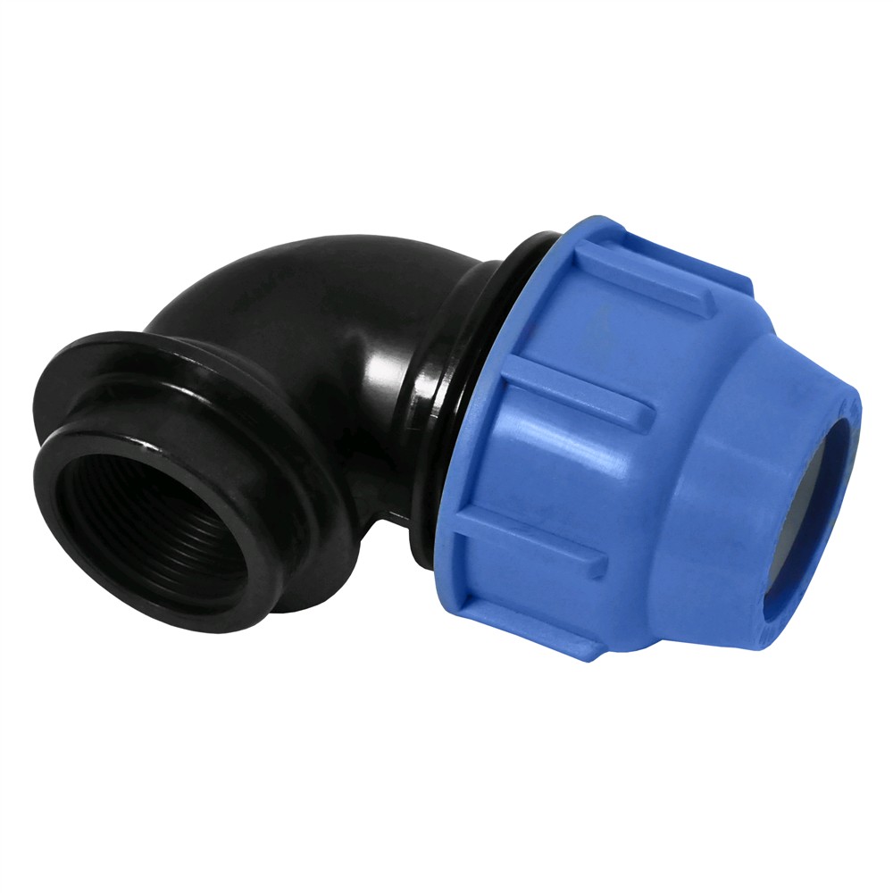 Elbow with faucet of PP 40X1-1/4" female with angle 90° used to installations angular water supply infrastructure lines, in irrigation and agricul, etc. Elbow with female fillet enables network returns 90 ° angle. The elbow connect pipe Ø 40 with valves or othe fittings by fillet, for joining the fillet recommend tu use teflon whiles pipe connect whith elbow in mechanically with faucet. Manufactured with European standards, resistant to corrosive materials designed to withstand pressure up to 16 bar.
