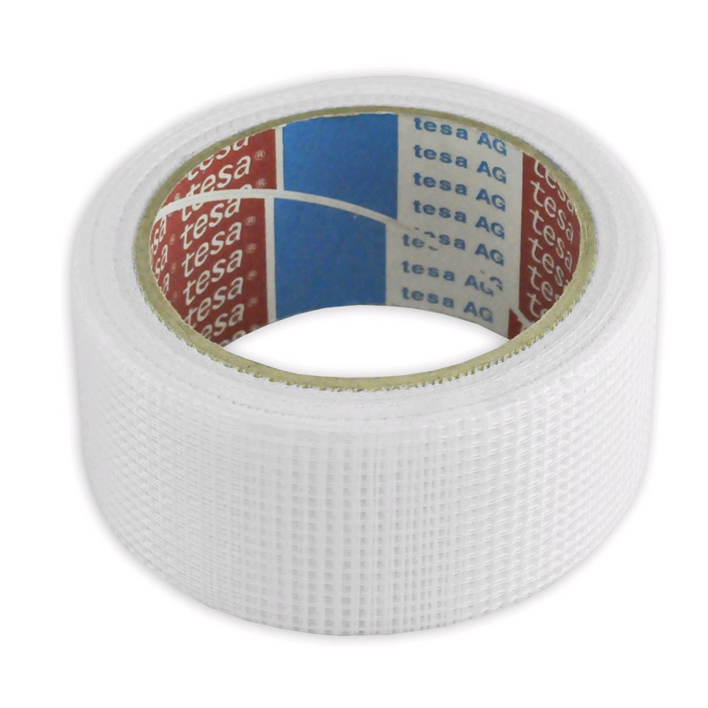 Fiberglass tape 25mx48mm. Self-adhesive fibreglass tape features the latest developments in joint tape technology. With its very strong and flat fibreglass mesh, tesa® 60099 offers durable and long lasting drywall/plaster board joints. The good adhesion and the very good tensile strength allow one-time application and smooth finished joints.